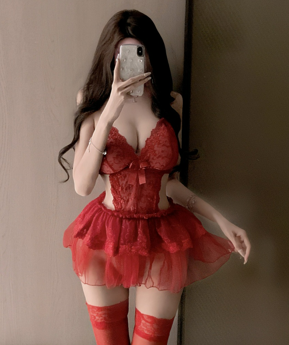 Delicate lace, soft layers, and a playful bridal touch—this set is made for wedding nights and honeymoon moments. Flirty, romantic, and just bold enough for after-hours.